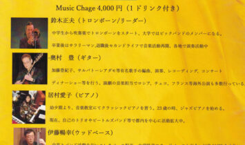 日時: 2025.12.6(日)開演: 17:30~ クリスマスライブです。心地よい素敵な音楽ライブを、是非聴きに来てください!【出演】 鈴木正夫 (トロンボーン/リーダー) 奥村豊 (ギター) 居村愛子 (ピアノ) 伊藤暢幸 (ウッドベース) 松本亮 …